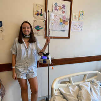 Se viene, se viene.. Ivana nos explica todo, pongo a mamá y Andy a anotar, porque es todo muy nuevo. Pero básicamente empezamos con Benadryl (que puede hacerme dormir), hidrocortisona y meperidina (evita los efectos de temblor llamado “purogenemia”, y creo que también de posibles alergias). Arrancamos despacio, acostada en la cama. Entra Gonzalo, me ausculta, golpecitos en la espalda, decir “treinta y tres” mil veces, mira mis uñas, piernas, panza, boca, de todo. Mamá siempre ansiosa preguntando por mi alta, yo... pensando en cómo voy a estar en media hora y Gonzalo diciéndole que no sabe ni lo que va a pasar mañana.